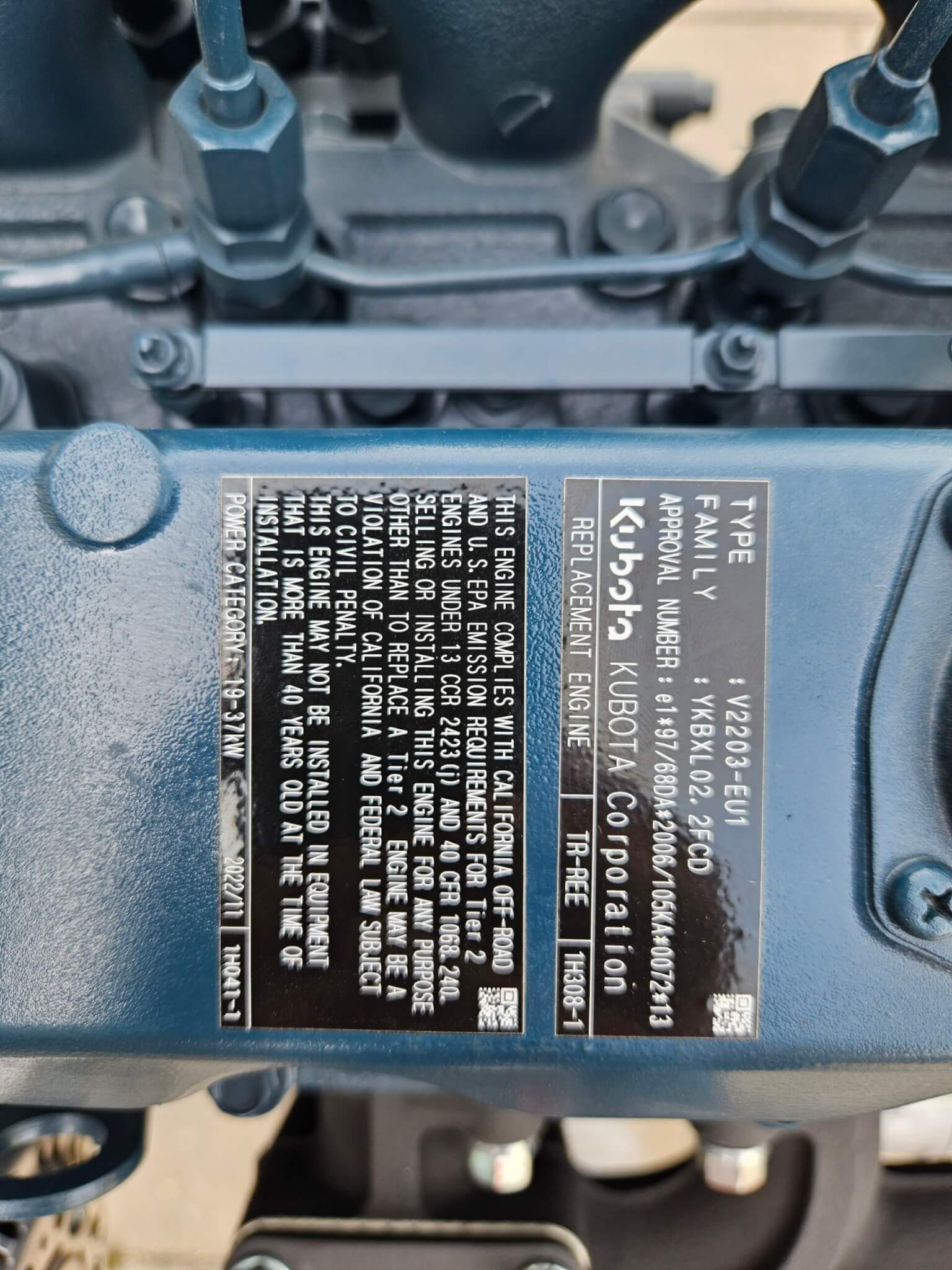 Jauns dzinējs Kubota V2203-EU1, 1G975-50001